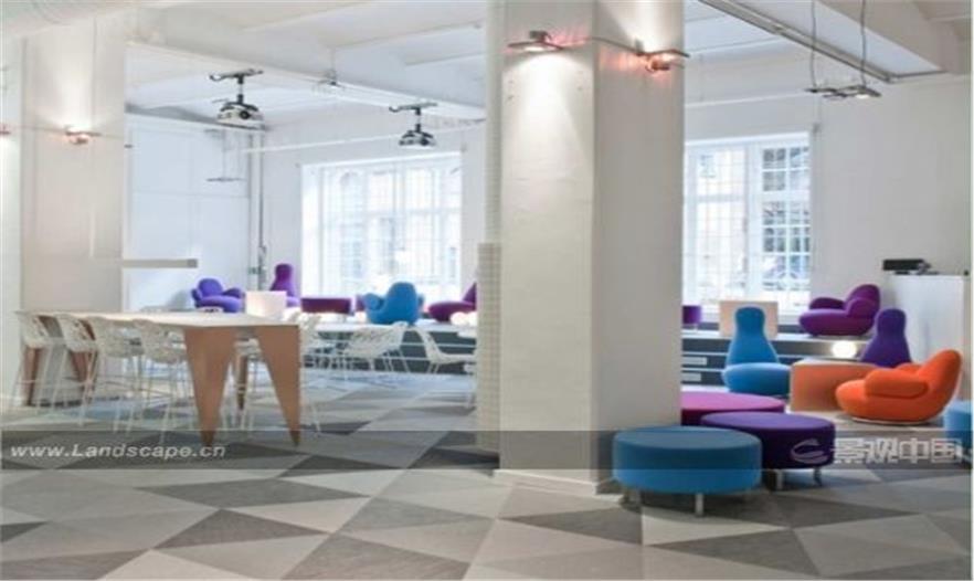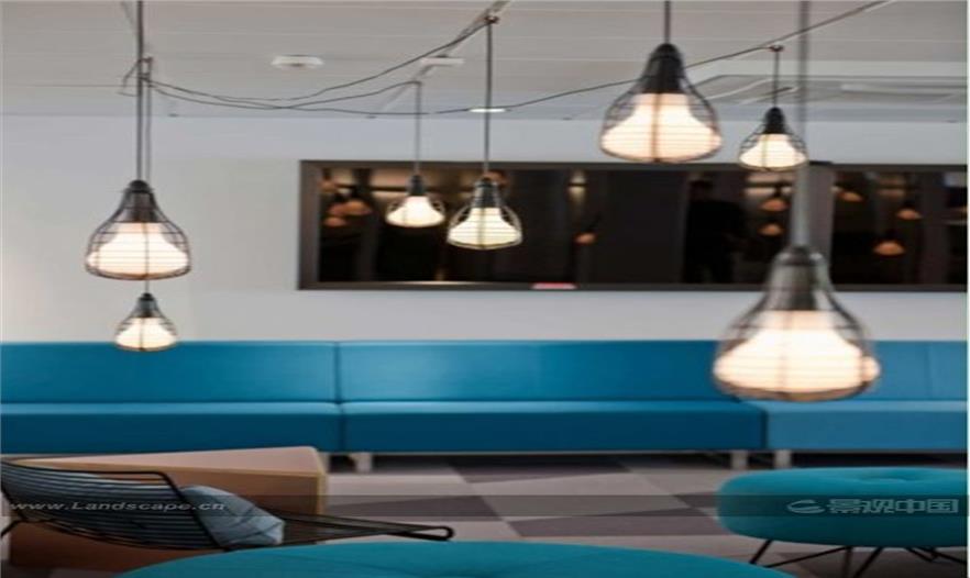 該辦公室的設(shè)計充分體現(xiàn)了Skype的企業(yè)精神:以實用和有趣的工具連通世界。辦公室內(nèi)部節(jié)點的形狀為平行四邊形或三角形,這一點從地板和一些硬質(zhì)家具的設(shè)計上也可以體現(xiàn)出來。那些柔軟、絢麗而好玩的家具的設(shè)計靈感源于Skype公司的圖標,而公司的云朵LOGO則被詮釋為云朵般的燈具,照亮了整個世界。