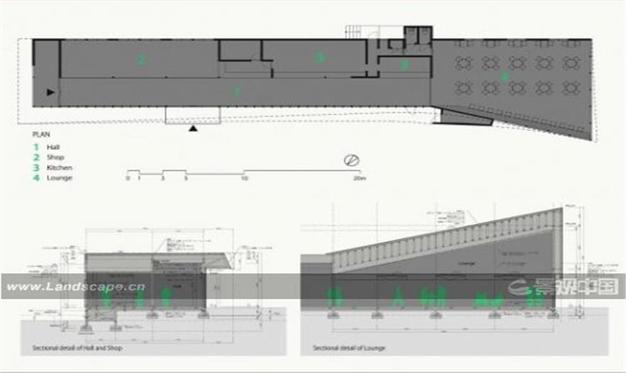 GR230服務(wù)中心的主要功能是為當(dāng)?shù)毓娞峁┦称贩?wù)。整棟建筑結(jié)構(gòu)簡(jiǎn)單,平面布局包括商店、亭子、休息處、食品區(qū)和飲料區(qū)。