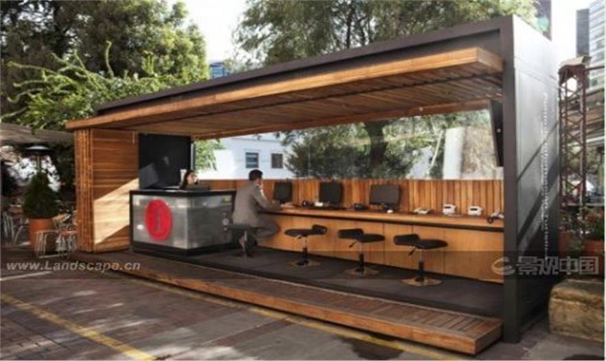 每個信息點都是依據(jù)場地位置的實際情況來設(shè)計的,避免所有場地上的信息點都為單一形式。盡管各個信息點的形式不一樣,但他們的結(jié)構(gòu)布局都與場地周邊環(huán)境融合的很好,充分利用了外部空間,而不至于成為場地上的障礙。