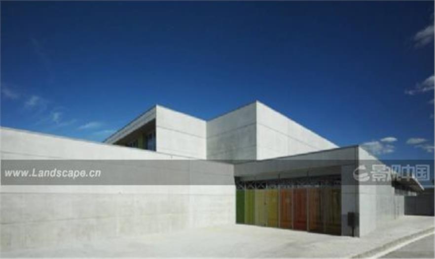 通過(guò)縱軸立面上外露的水泥墻反映出了一種建筑和材料的生機(jī)勃勃的特性。建筑立面同時(shí)圍合了中部庭院,同時(shí)也在物質(zhì)性上同上述的縱軸立面產(chǎn)生對(duì)應(yīng)。在這里,將立面噴涂成鮮艷的顏色,營(yíng)造出一種溫暖和快樂(lè)的感覺(jué)。它們同透明的部分不斷交替,同內(nèi)部空間形成極大反差。