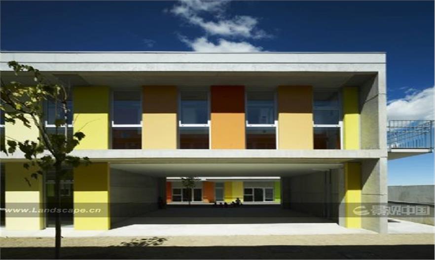 這座色彩明快的小學(xué)校園是由Arqtel事務(wù)所設(shè)計(jì)的,意圖通過(guò)空間的設(shè)置、建筑構(gòu)造及建筑體量的朝向等使其同周邊環(huán)境形成對(duì)話(huà)。這座建筑不僅在功能安排上達(dá)到了最優(yōu)化,同時(shí)還強(qiáng)調(diào)了光、朝向以及產(chǎn)生的空間質(zhì)量等方面。