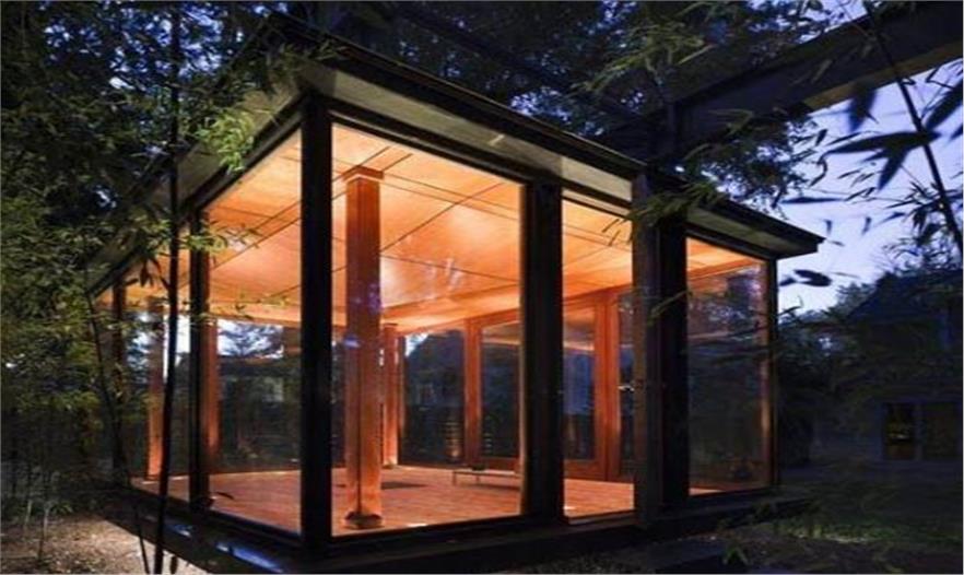 在馬里蘭州貝塞斯達(dá)城郊的一戶人家后院里,有一座懸浮在草坪上的小小屋子:青銅材質(zhì),通體玻璃墻,外觀看上去像是日式燈籠。它是一間茶室。白日里它靜悄悄被周圍綠樹掩映著,里外都浸潤(rùn)著冥思的氣氛。晚上,茶室的底部亮起燈光,整個(gè)屋子就好像被冥想的力量托了起來(lái),靜靜漂浮在滿院綠色中。