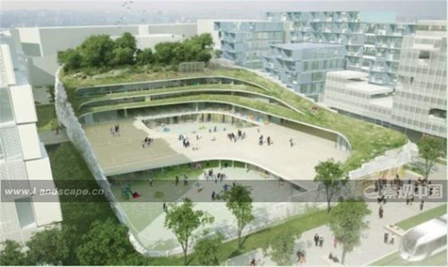 目前布洛尼-比揚古市的城市改造正進行的如火如荼,其中包括著名的塞干島,該島曾經是主要的工業(yè)區(qū)。項目場地位于改造區(qū)域的核心位置,Chartier-Dalix建筑事務所剛剛獲得設計一所小學的資格。這座小學將同一座公共體育場混合在一起,并覆蓋一層“活的”外殼。場地上會包含豐富的動植物群落,從昆蟲至鳥類,從花草到樹木,都被收羅其中。該項目試圖模擬一個自給自足的生態(tài)系統(tǒng),讓周邊建筑里的人們能欣賞這美麗的景觀,還能為孩子們提供一片探索發(fā)現的廣闊天地。在這樣的設計背景下,設計師設計出一棟平頂建筑,其形態(tài)與功能如液體一般流向場地。這種人造地形中既有凹陷,又有隆起,道路和頂棚穿插其中,整體形態(tài)連貫自然。