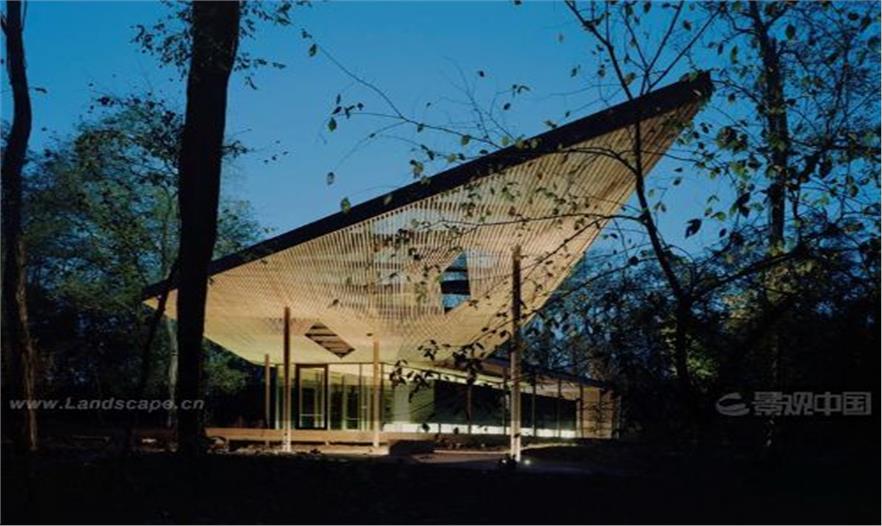 Marlon Blackwell建筑事務(wù)所在位于美國(guó)印第安納波利斯藝術(shù)博物館的100英畝的藝術(shù)與自然公園中心建造了Ruth Lily游客觀光亭。