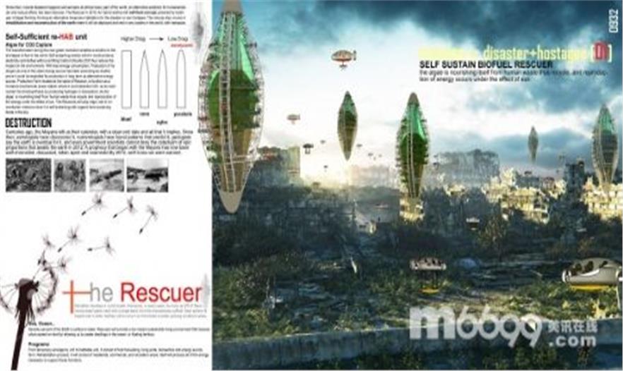 救難者摩天大樓是一座利用藻類氫提供能量的飄浮型摩天大樓,它為災(zāi)區(qū)的人民提供暫時(shí)的避難所。同時(shí),在對(duì)疫區(qū)進(jìn)行翻修重建的時(shí)候,它也可以作為一個(gè)臨時(shí)的住所。