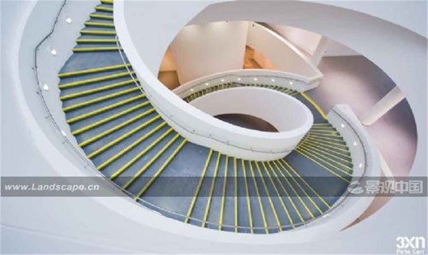 這一包容性的建筑結(jié)構(gòu)中非常重要的一個(gè)元素是它的雕塑樓梯——喜愛3XN的朋友們可以輕易識別出它是3XN標(biāo)志性的特征。這一螺旋式的樓梯位于新游客們即將進(jìn)入的宏大的中廳中,被尼爾森視為談話發(fā)生器。他認(rèn)為,“人們一起上下樓梯時(shí)會相互交談”,他還指出,輕輕彎曲的形式可以消除長長的走廊存在的必要并優(yōu)化空間。