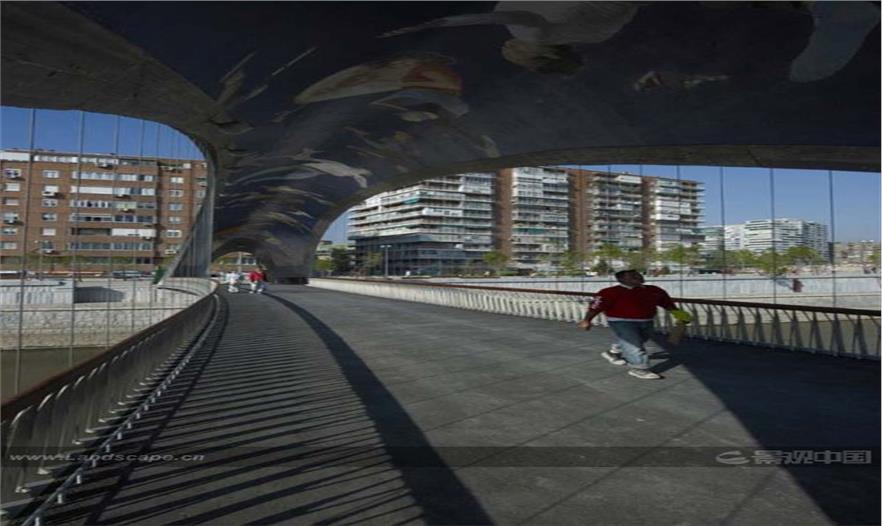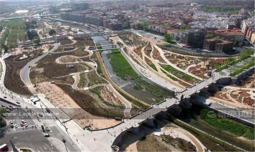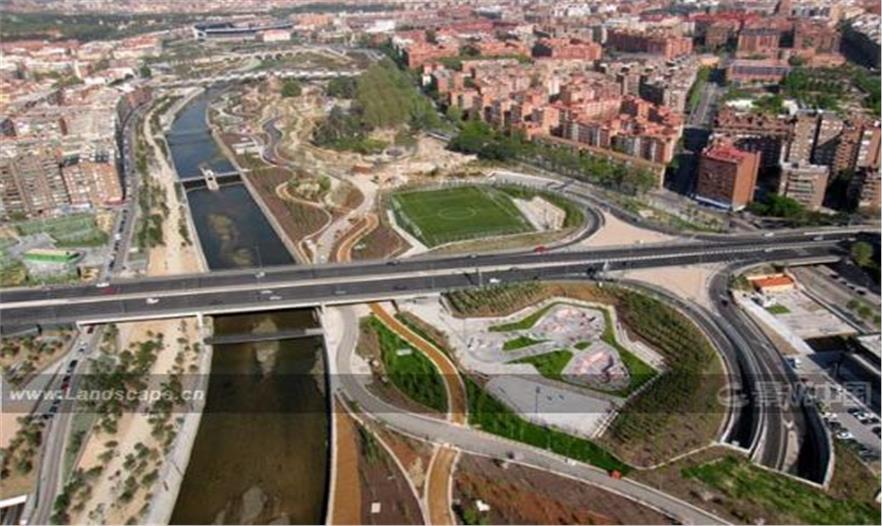 這個(gè)項(xiàng)目是馬德里市長Alberto Ruiz-Gallardón一項(xiàng)雄心勃勃的計(jì)劃,沿著M30高速公路,全程長43公里,6個(gè)項(xiàng)目段臨河,沿途基礎(chǔ)設(shè)施建設(shè)費(fèi)用高達(dá)60億歐元。West8景觀事務(wù)所和馬德里著名建筑師一起制定了Madrid RIO總規(guī)劃。方案從2005年的國際競(jìng)賽中脫穎而出,概念是»3 + 30«,一個(gè)分三步發(fā)展的戰(zhàn)略計(jì)劃,首先建立一個(gè)基本的構(gòu)架為未來進(jìn)一步的項(xiàng)目打下堅(jiān)實(shí)的基礎(chǔ)。80公頃中包含47個(gè)子項(xiàng),總造價(jià)達(dá)到了2.8億歐元。第一期在2007年完工,剩余部分在2011年春季完工。