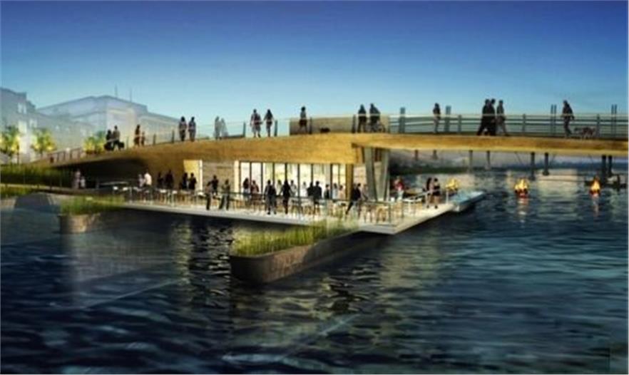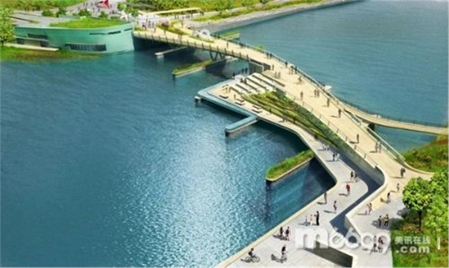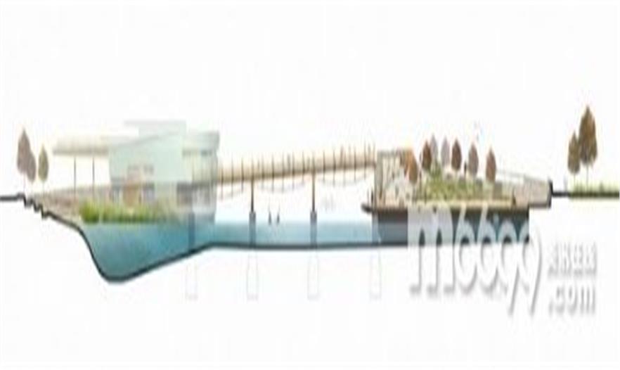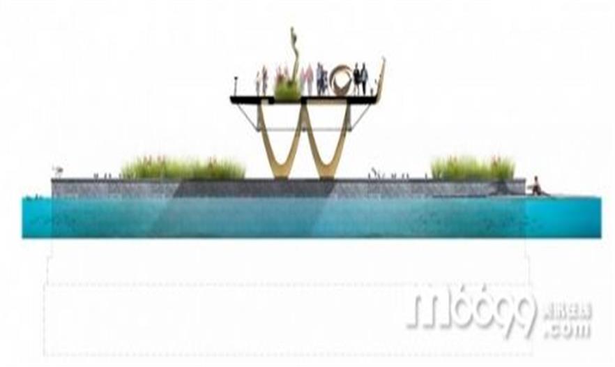 構(gòu)造這個城市紐帶的同時也考慮到城市流動性、定位以及行進過程中的風景、作為藝術(shù)品本身的橋的畫面框架。人行及自行車天橋通道被看做是將不同區(qū)域及方向的人流聚集又分散的一連串觸角。以天橋東段為軸心,四周分別往James大街、Transit大街以及貫通南北的沿河大道輻射。而天橋西段穿過雕刻/野花花園則將行人分流往四個不同的方向。