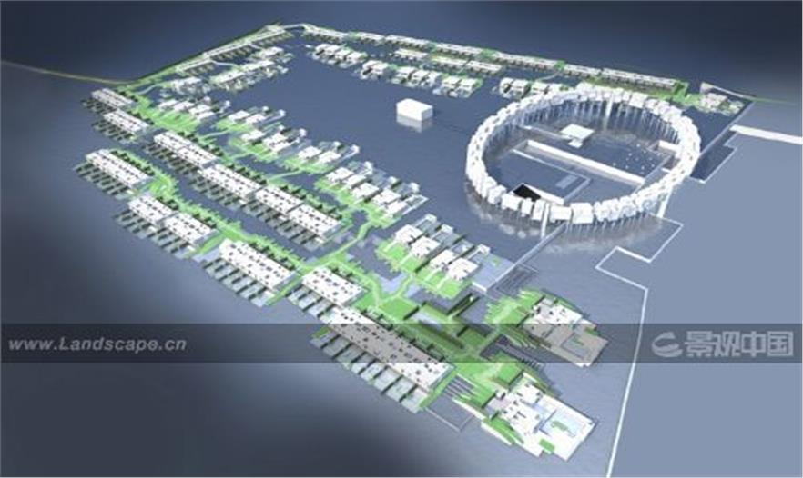 景觀設(shè)計(jì)需要連接標(biāo)志性的酒店以及100個(gè)服務(wù)別墅。建筑設(shè)計(jì)由Department of Architecture事務(wù)所完成,標(biāo)志性酒店為環(huán)狀,100個(gè)單體白色別墅漂浮在世界上最大的游泳池“水晶湖”之上。環(huán)狀標(biāo)志性酒店的形態(tài)占主導(dǎo)地位,所以設(shè)計(jì)了無(wú)定形的景觀作為襯托。業(yè)主有著很強(qiáng)的中國(guó)文化思維,所以我們?cè)谠O(shè)計(jì)過(guò)程中應(yīng)用了陰陽(yáng)理論,并認(rèn)為陰陽(yáng)調(diào)和是重點(diǎn)。