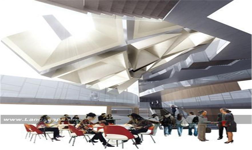 項目中的商學院將要在高峰期容納8000余人??紤]這方面,這個復雜綜合體中的建筑物需要一個簡單和清晰的組織。所有的公共活動,例如禮堂、圖書館、博物館、學生食堂、商店等將位于第一層,第二層以及負一層。所有公共的樓層都與花園相連接。主要的教室位于第三、第四層樓。西區(qū)與橋相連為學生提供一個簡單、連續(xù)的環(huán)路。教室的上一層,沿著休息室的路線,分布著獨立的行政辦公室、培養(yǎng)室、研究和會議中心等單元。劇院和博物館在東區(qū)的第一層,男生俱樂部連接著博物館,這樣,他們可以共享設備和工具。