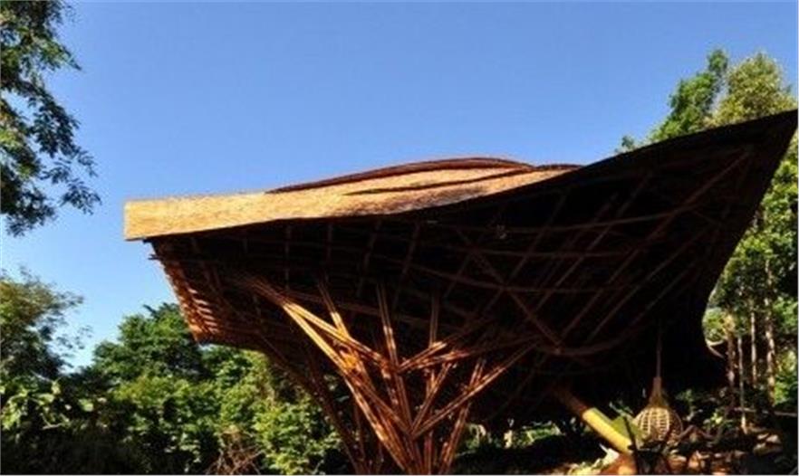 建筑位于海邊的巖石斜坡上。設(shè)計的竹子穹頂位于較高的位置,能欣賞到周邊壯麗的景色。其整個的結(jié)構(gòu)及屋頂都取材于當?shù)氐奶┲?,從而更有利于度假酒店的可持續(xù)發(fā)展。內(nèi)部由當?shù)胤N植園的河紅桉木構(gòu)成,并裝飾有美麗的藤結(jié)構(gòu)元素。
