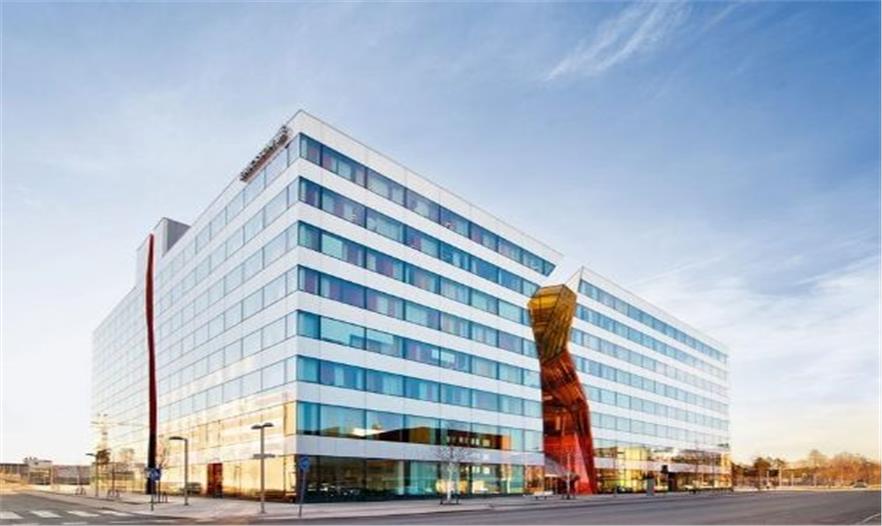 這里的愛立信(Ericsson)大樓立面簡(jiǎn)約,純凈如水。在入口處戲劇性的裂開,內(nèi)部紅色的玻璃幕墻像寶石的內(nèi)部絢麗奪目!