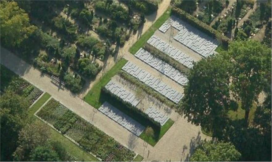 65分區(qū)是第二次更新的一部分。在這個土葬區(qū)塊,經(jīng)過設(shè)計5個棺木可以重疊擺放。殯葬的權(quán)利以十年為限。這個傳統(tǒng)的土葬區(qū)域,平行排列,保留原有邊界,墓碑略高于地面,高低坐落。此墓碑也許意味著多樣性與個人意愿的共同表述,它非常統(tǒng)一,但是又具有凹槽可以放置牌位。