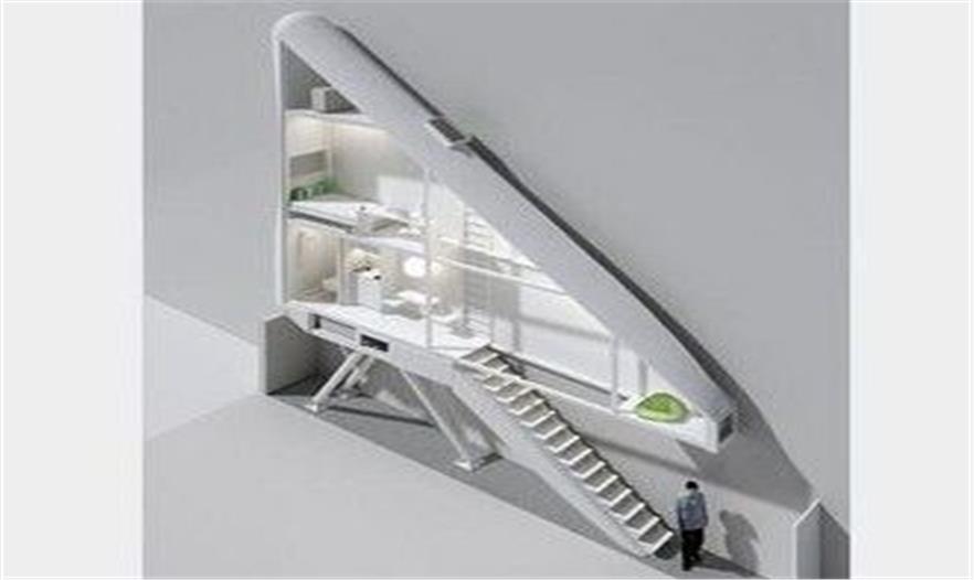 這幢四層住房將有一間臥室、一個(gè)廚房、一個(gè)浴室和一個(gè)休息室。由于沒(méi)有樓梯間,直接用豎梯連接每一層樓。這幢四層住房的每一層樓將有40英尺長(zhǎng)。