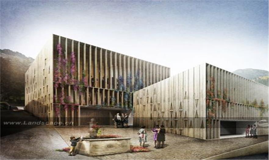 ETB工作室設(shè)計(jì)的這座多功能中心,榮獲了國(guó)際競(jìng)賽中的一等獎(jiǎng)。它坐落于巴赫村的東部,位于意大利薩帕達(dá)的古村莊。設(shè)計(jì)師考慮了建筑和古村莊的尺度的關(guān)系,并且創(chuàng)造了建筑物和周?chē)鷫邀惖膷{谷和山脈的互動(dòng)關(guān)系。