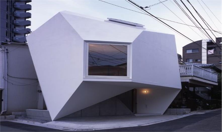 這一設(shè)計(jì)來自日本建筑師山下泰裕(Yasuhiro Yamashita),據(jù)說靈感來自于他的一次失手,導(dǎo)致一塊水晶跌落地上,插入土壤。那一剎那,靈感突現(xiàn)?!斑@是我第一次根據(jù)現(xiàn)有地形、家具和一輛汽車的要求來建造一棟房屋。還要滿足房主的四個(gè)愿望:寬敞的空間,有陽光沐浴,配套車庫,還有……總之,一棟引人注目的房屋!”山下泰裕說。不過,他圓滿地完成了這個(gè)任務(wù),或者說挑戰(zhàn)。
