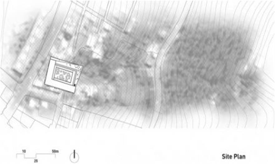 整個(gè)建筑平面呈現(xiàn)“L”的形狀,占據(jù)了地塊靠近街道的兩個(gè)角,這樣一方面利用了較堅(jiān)實(shí)的土壤層,還勾勒出了清晰的城市界面。地下一層有一個(gè)下沉的院子,擁有一個(gè)懸挑出來的游泳池,朝向遠(yuǎn)處的美景。游泳池圍合了下沉花園,使整個(gè)建筑更具整體性。同時(shí),下沉花園為地下停車庫提供采光。