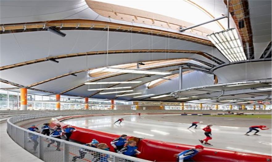建成后的新速滑館可容納7000名觀眾,靈活的空間布局讓這座場(chǎng)館可以舉辦多種國際體育賽事。體育館長200米,寬90米,頂部高性能的凈跨屋頂由外圍的承重結(jié)構(gòu)支撐,為室內(nèi)創(chuàng)造了一個(gè)無柱子的寬敞大空間。
