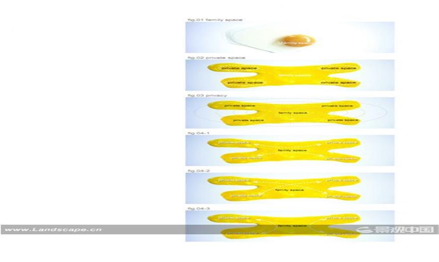 將家庭空間安排在場地的中央;將私人空間安排在邊緣,統(tǒng)一的逐個相連。利用房間之間的距離和曲線空間提供適當(dāng)?shù)乃矫芨?。每個房間都通過中央的空間與其他房間隱約相連。