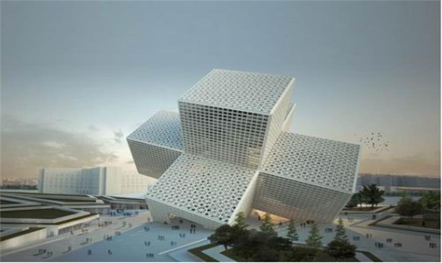 建筑立面形式的設(shè)計(jì)靈感來(lái)源于一種阿拉伯圖案,立面上的窗洞可以將自然光線引入到一些特定的室內(nèi)區(qū)域,光線從北到南逐漸變得明亮,并為東西兩個(gè)立面創(chuàng)造了過(guò)渡性的光影圖案。