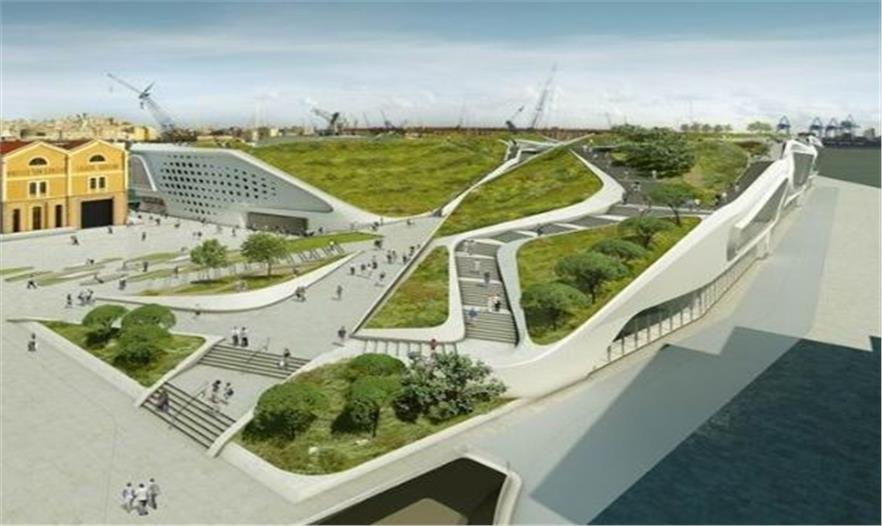 功能: 立體廣場與多功能建筑綜合體: 郵輪碼頭, 康體中心, 文化知識(shí)中心, 商業(yè)中心, 公園和圓形劇場.