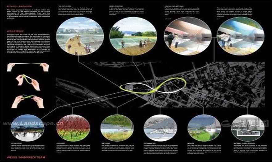 近日,來自Weiss/Manfredi的朋友和我們分享了“Point州立公園入口”探索性設(shè)計,該方案對賓夕法尼亞州匹茲堡市的Point州立公園中城市與環(huán)境之間的聯(lián)系進行了探索。目前,Point 州立公園并未以其位于匹茲堡地理中心的潛在優(yōu)勢而起到橋梁的作用,把建造在工業(yè)成就之上的城市與成就了匹茲堡良好生態(tài)歷史的阿勒格尼河及莫農(nóng)加希拉(Monogahela)河河岸聯(lián)系起來。Weiss/Manfredi的提案試圖以一種新的橋梁類型來連綴這所城市和它的河岸,莫比烏斯步道“并不是簡單地將兩個不相關(guān)的部分連接起來,它綜合地使廣泛的地區(qū)相互聯(lián)系了起來?!?