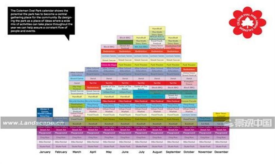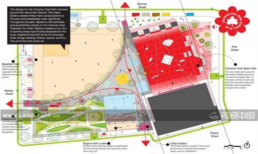 設(shè)計項目:操場,溜冰公園,市民公園,舞臺,壘球場和其他運動項目。