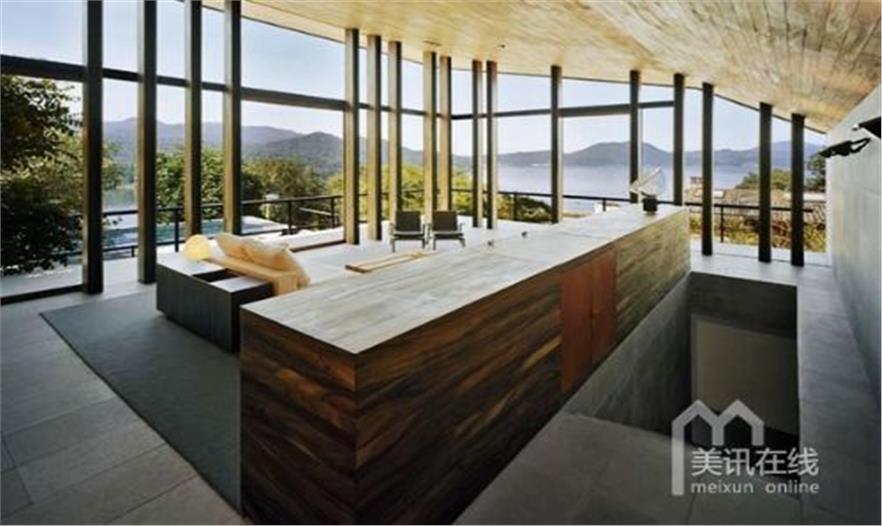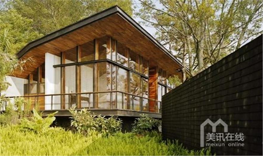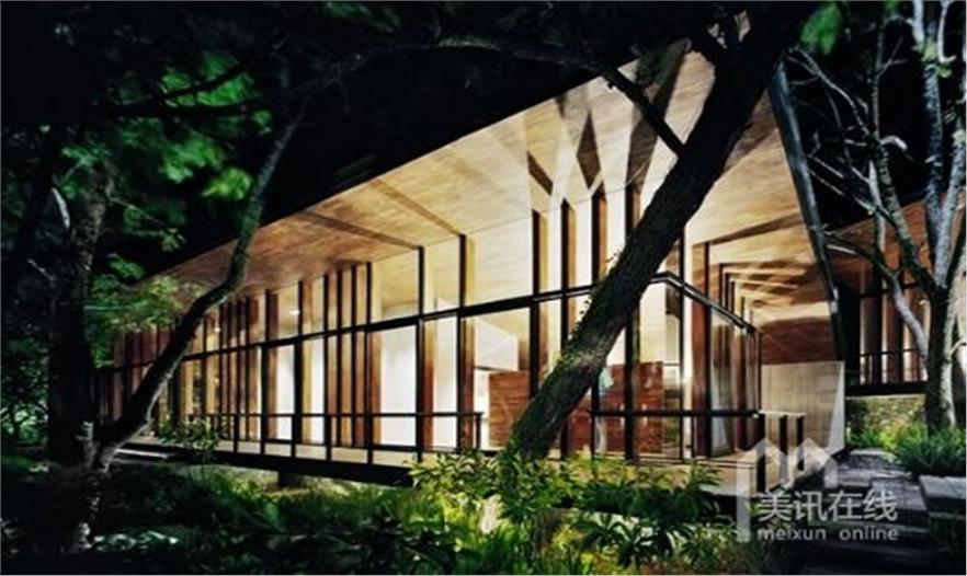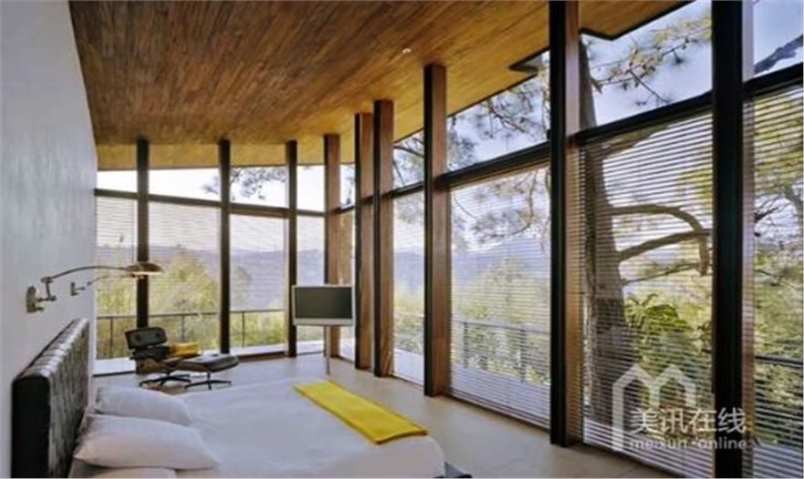 地處一塊兩平方英里的開闊用地上,這所林中之屋顯得非常的寬敞、輕盈,或許還帶點兒清涼之氣。用地傾斜,隨之展開的也是山巒、湖泊錯落有致的風景,人與自然在此緊密相連。而這恰恰就是設計本身的理念,將別墅融入廣闊的自然環(huán)境中去,兩個分別為公共與私人所用的涼亭,另有一個平靜的戶外泳池,仿若已于湖水融為一體。