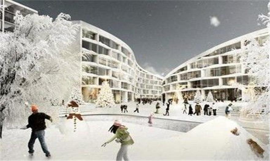 比賈克-英格爾斯建筑事務(wù)所計(jì)劃在一個(gè)中央廣場設(shè)計(jì)4幢有曲線屋頂?shù)拇髽牵褂慰湍軌驈奈蓓斚蛳禄?
