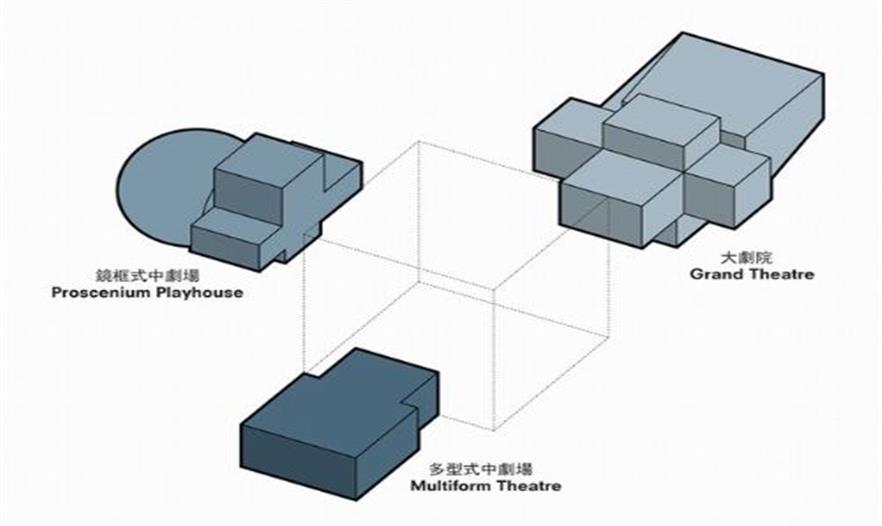 TPAC由三個主要體量構(gòu)成,包括一座可容納1500人的大型劇院及兩座分別可容納800人的中型劇院,三個體量不一的劇院部分嵌入到由波浪形玻璃包裹的正方體中,既可相互獨立又可打通連接。這種布局方式讓劇院能夠獨立自主的發(fā)揮功能。同時,舞臺部分還可以自由調(diào)節(jié)并與出乎意料的戲劇場景融合使用,為觀眾提供獨特的體驗和自由。