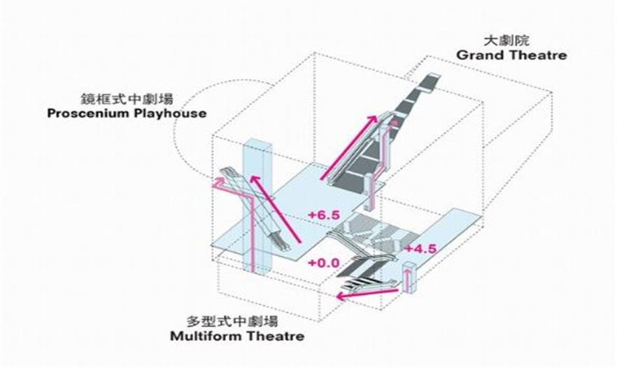 多功能劇場與大劇院位于同一樓層,但方向正好相反的位置,這是一個靈活的空間,可以為最具實驗性的表演提供場地。