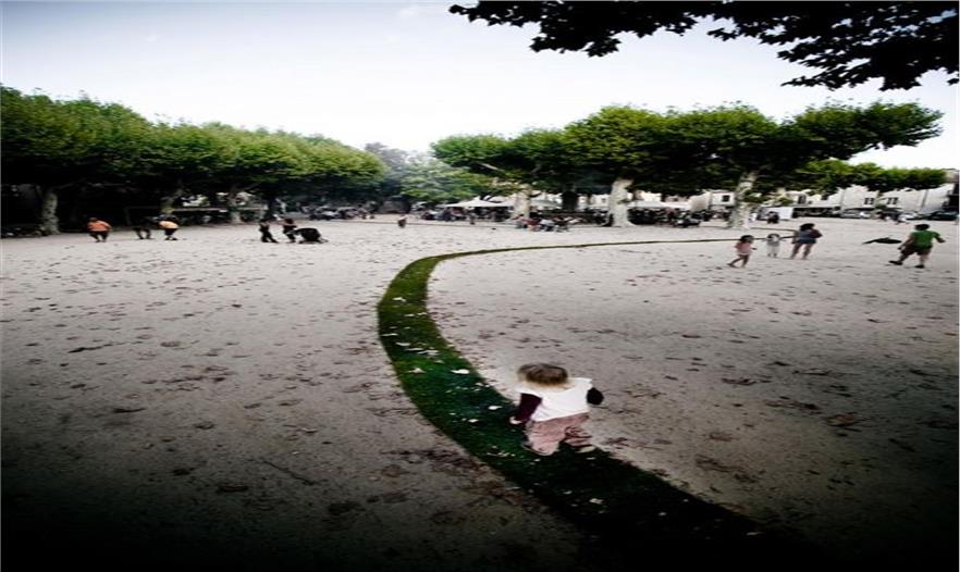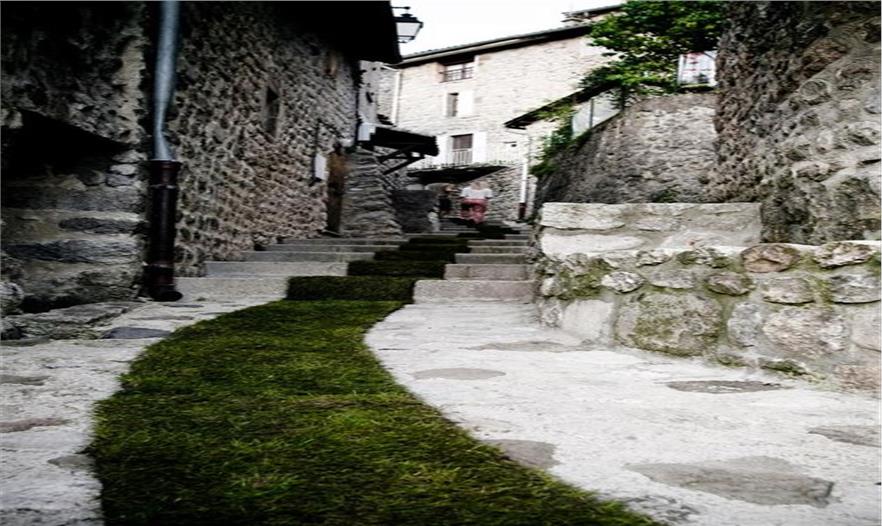 這是2011年藝術(shù)家自發(fā)安裝在法國Jaujac村以慶祝藝術(shù)與自然的一個藝術(shù)品。這420米長,大約3.5噸的草皮向紅地毯致敬。綠地毯連接了自然區(qū)域和村莊的中心地帶。通過藝術(shù)這條線,人和自然被聯(lián)系起來。綠地毯越過橋,在瀝青路上飛梭,爬上階梯,穿過沙地,把我們的生活變得更有趣。