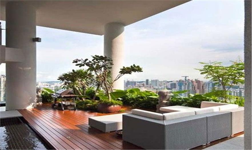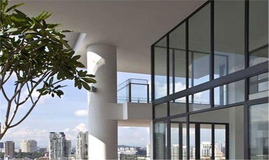在新加坡天際線的映襯下,起居空間向戶外花園打開,使得居民更加覺得處處都是綠色。