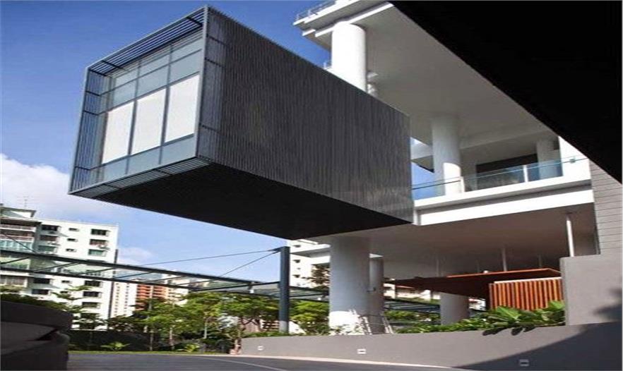 位于新加坡烏節(jié)路上的這座住宅樓名為"天空花園"(SkyPark)。它以創(chuàng)新型的"空中花園"在其他高層住宅樓中獨樹一幟。盡管場地極其狹小,但實現(xiàn)了開發(fā)商所期待的密度和效率,同時不失寬大的空間感。底層設置了一圈池塘和郁郁蔥蔥的景觀區(qū)域。利用綠地和幕墻以及懸垂出來的一座體育館,空間感和空間的深度得以表現(xiàn)出來。