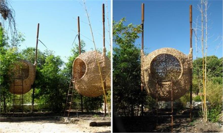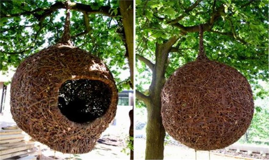 Porky的系列作品“weaver’s nests”沒(méi)有起支撐作用的鋼架結(jié)構(gòu)。每個(gè)大鳥(niǎo)巢都是用例如樹(shù)皮、樹(shù)枝等自然材料一點(diǎn)一點(diǎn)編織出來(lái)的。最終成形的作品十分堅(jiān)固,可以容納兩個(gè)成人。