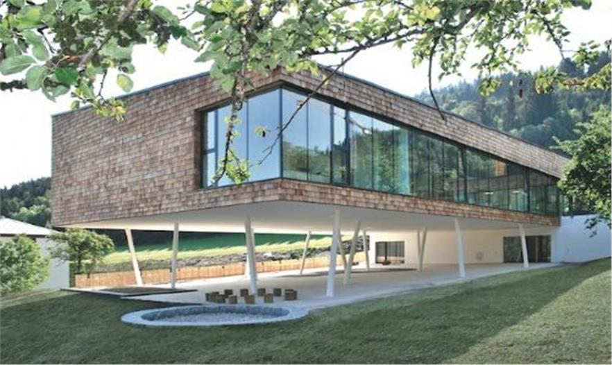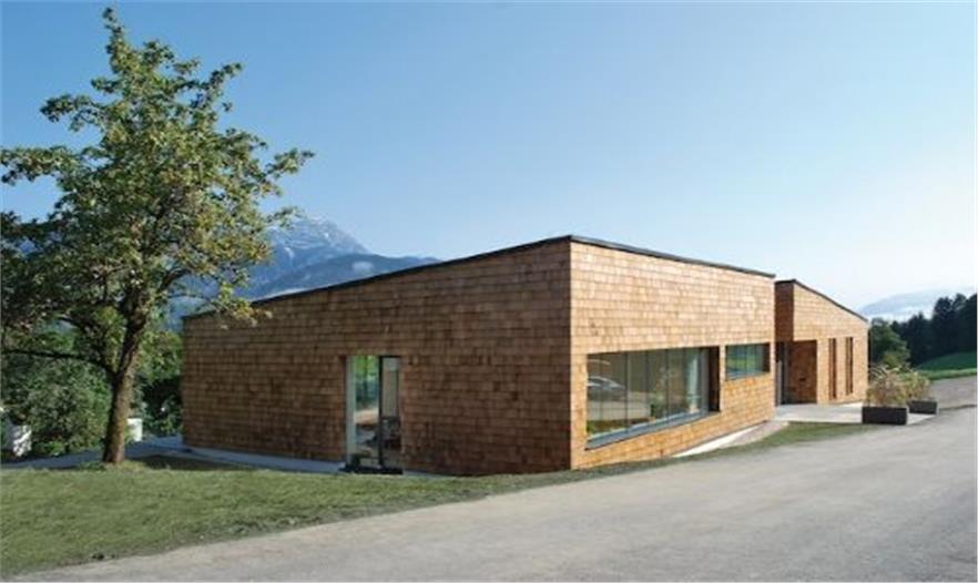 建筑在材料選擇上利用木頭與玻璃,做到了對能源利用的最優(yōu)化設(shè)計。設(shè)計使得內(nèi)部有著非常舒適的小氣候。立面所用的材料為當(dāng)?shù)匾环N落葉松木,這種材料可以使建筑在當(dāng)?shù)氐臍夂驐l件下存在幾十年而不進行任何維修與養(yǎng)護措施。