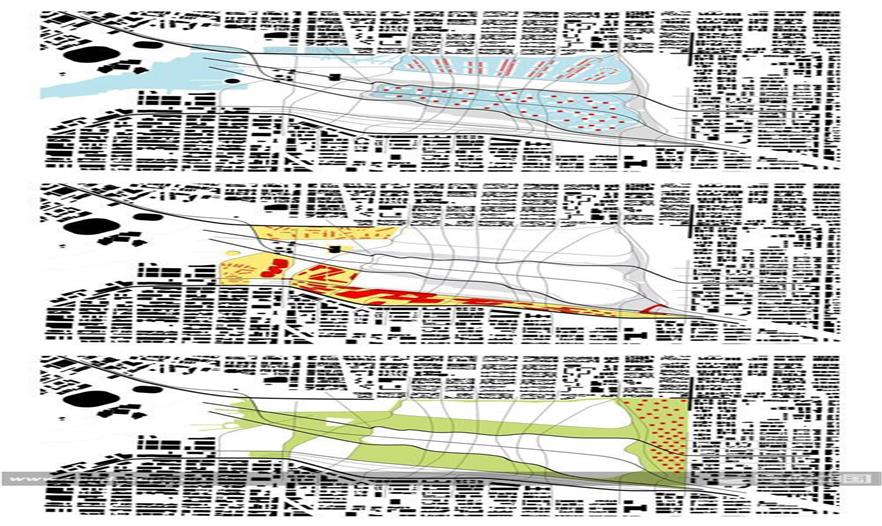 在可用的城市空間里結(jié)合可持續(xù)水資源管理并且做出引入注目的設(shè)計是設(shè)計師面臨的最大挑戰(zhàn)。這個“城市多元”方案的另一個創(chuàng)新之處在于,通過引入三個新的幾何形狀,重組這片混亂的東部區(qū)域:(1)40公頃水景觀,包括水鎮(zhèn),水族塔,蘆葦河床自然保護(hù)區(qū),濱海區(qū);(2)90公頃的自然景觀,包括公園公寓,海灘;和30公頃的城市景觀 ,包括 Emily Carr藝術(shù)與設(shè)計學(xué)院,溫哥華美術(shù)館和住宅區(qū)及VAG雕塑園。
