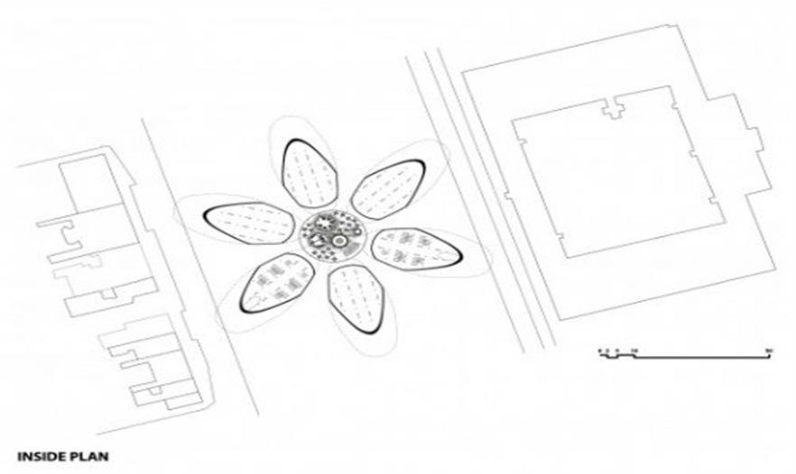 蘊(yùn)含在這些絕妙形態(tài)里的文化意義是我們生活中不可或缺的一部分,然而毋庸置疑的是,愛樂樂團(tuán)已經(jīng)成為一種公認(rèn)的主流象征。“郁金香”的花瓣抬高一點就形成一個理想的階梯環(huán)繞的圓形劇場,可以向公眾開放用來舉辦免費(fèi)音樂會。在溫暖的夏日夜晚何不以博物館為屏幕放映一場露天電影呢?博物館對面的花瓣也可以微微抬升形成一個舒適的室外電影放映廳。