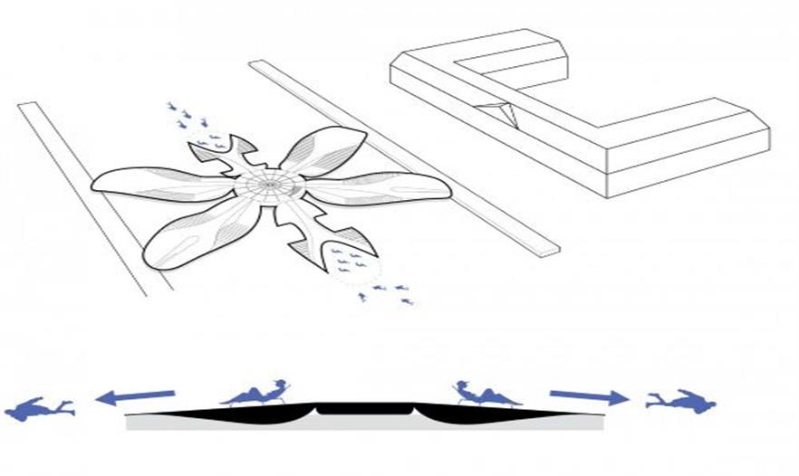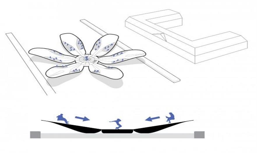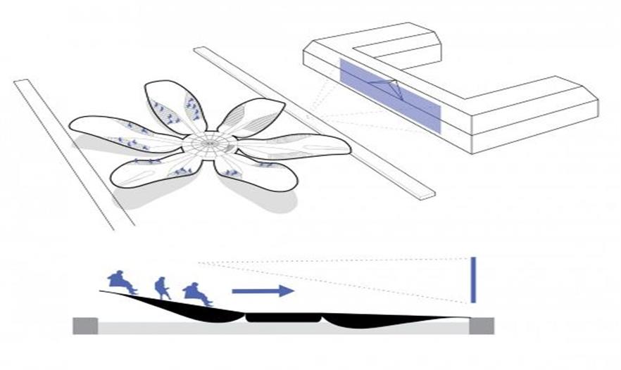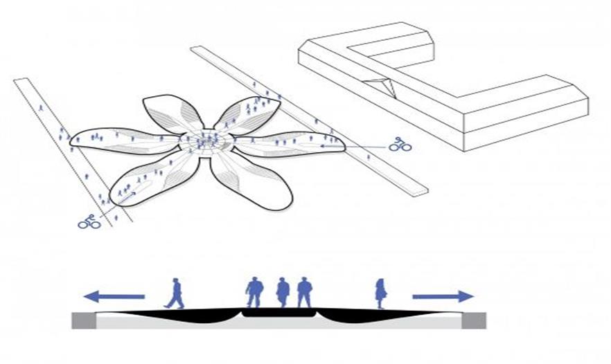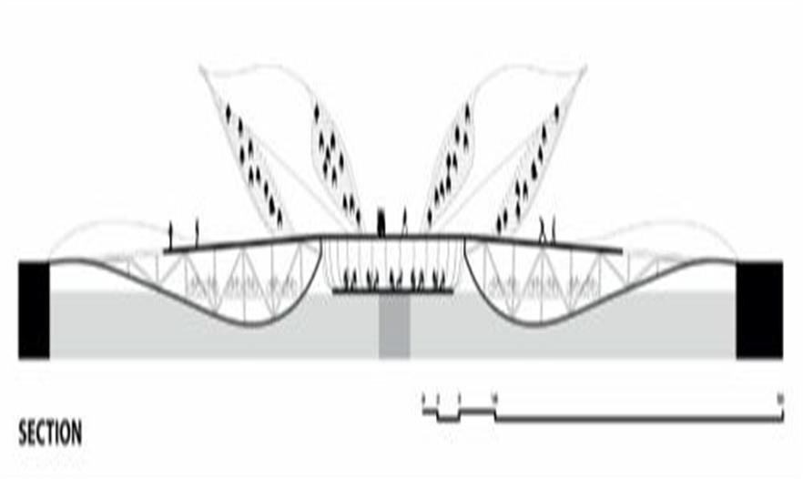 一座似乎在不斷追求舉辦各種活動空間的城市里,失去修建多功能橋梁的機(jī)會,這是件遺憾的事。這朵郁金香的花瓣根據(jù)一天時間變化可以展開到不同位置,在廣場方案中,所有花瓣都開到最大,似在表現(xiàn)對隱士美術(shù)館的尊敬。這個美麗的自然藝術(shù)品能夠容納下最大的人流量,也方便了兩岸之間的流通?!坝艚鹣恪钡闹行奈恢萌顺睗u增,是駐足享受河道風(fēng)光,感受真實鄉(xiāng)間氣息的最佳之地。在這里你將發(fā)現(xiàn)出一個全新的城市視野。