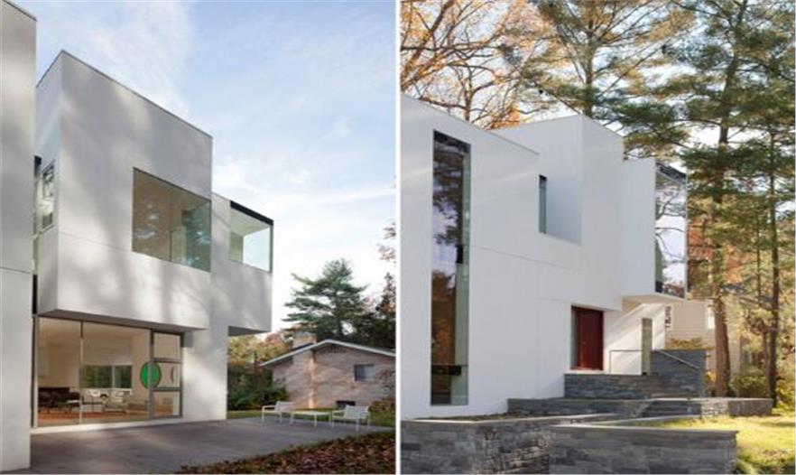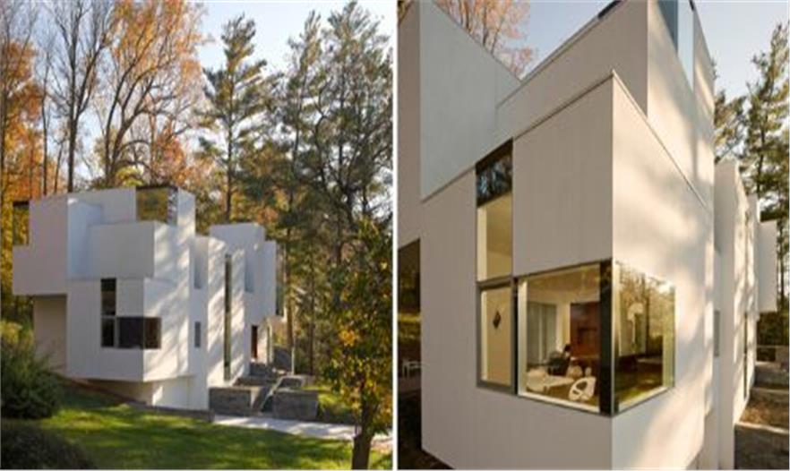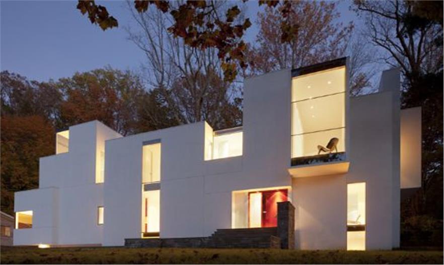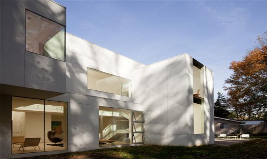 NaCl住宅盡力打破普通住宅的水平分層形式,形成一個(gè)看起來模糊曖昧的空間構(gòu)架。期待結(jié)果是像是不完美的粗獷自然石材那般。這個(gè)單體建筑擁有動(dòng)態(tài)的內(nèi)部空間。與表面齊平的不規(guī)則排布的玻璃,讓建筑看起來更自由。