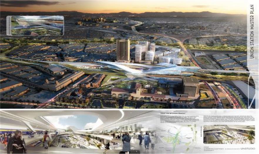 UNStudio , EE&K a Perkins Eastman 公司以及 Jacobs Engineering一起提出了洛杉磯聯(lián)合車站2050概念總規(guī)。其富有遠見的探索了未來城市和區(qū)域交通的可能性。這份提案作為6份提案中之一,將進入6月份以后的" />