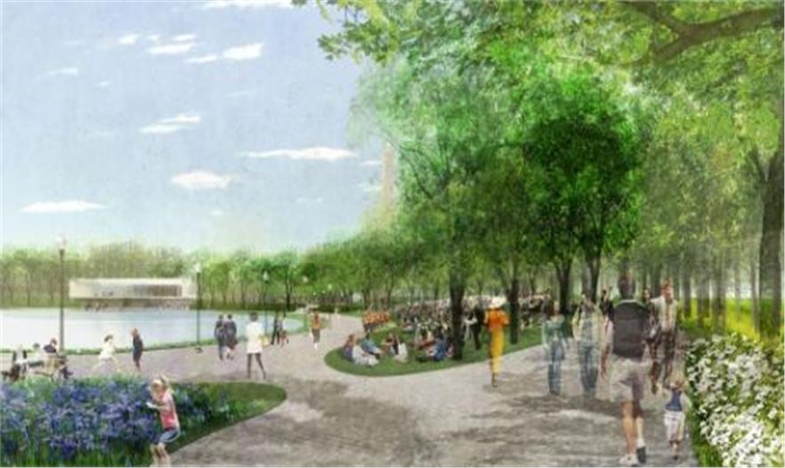 Weiss/Manfredi和OLIN將改造西爾劇院。Marion Weiss和Michael Manfredi描述說,“我們的愿景是從內(nèi)在和外在上同時提升表演藝術,用一個被濃蔭遮蔽的露天圓形劇場來重申國家中心舞臺的角色。觀眾的注意力將被同時吸引到方尖碑和藝術上來,一座蜿蜒的陸地橋?qū)⒅亟◤V場和其原本的潮汐盆地之間失去的聯(lián)系。”