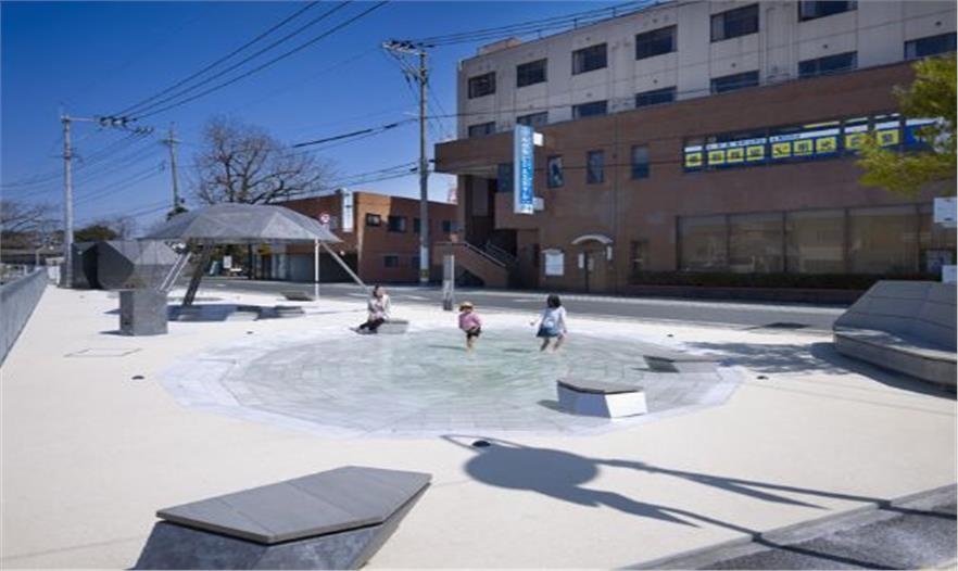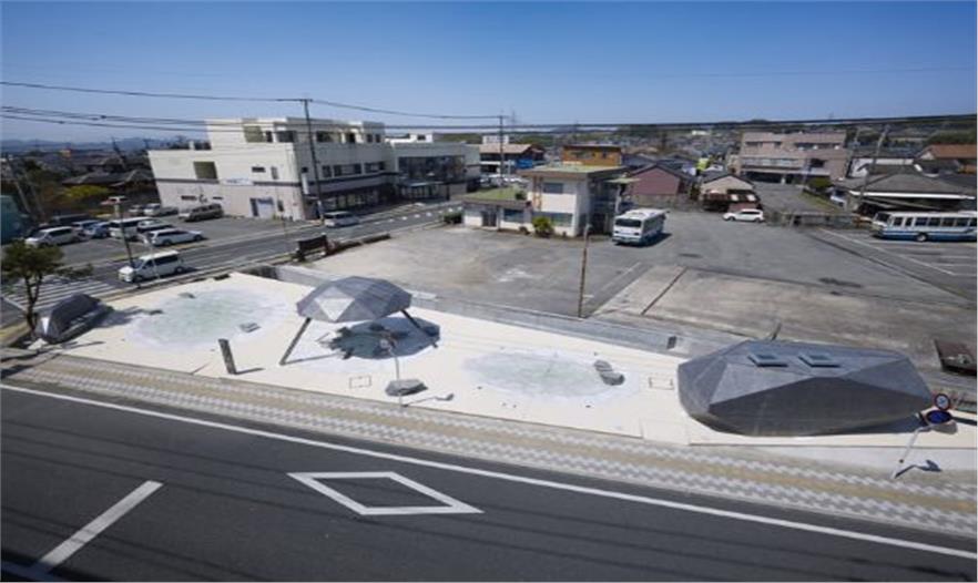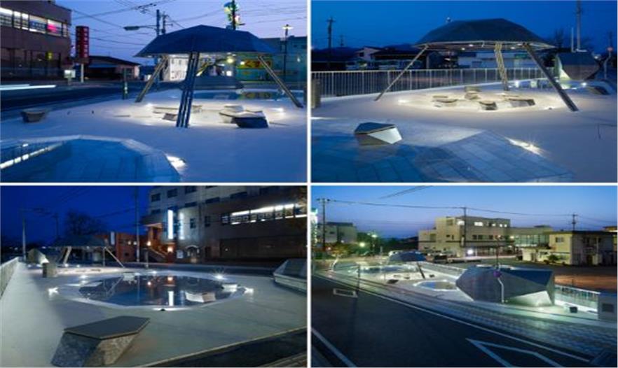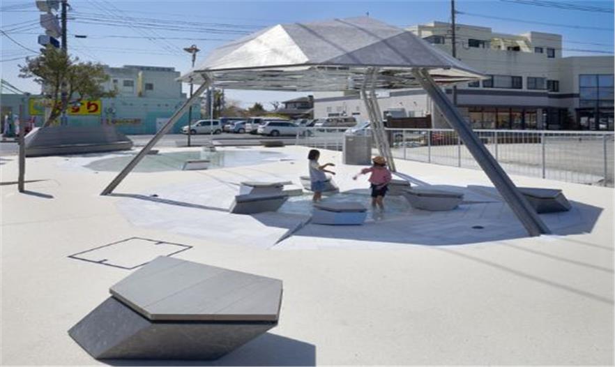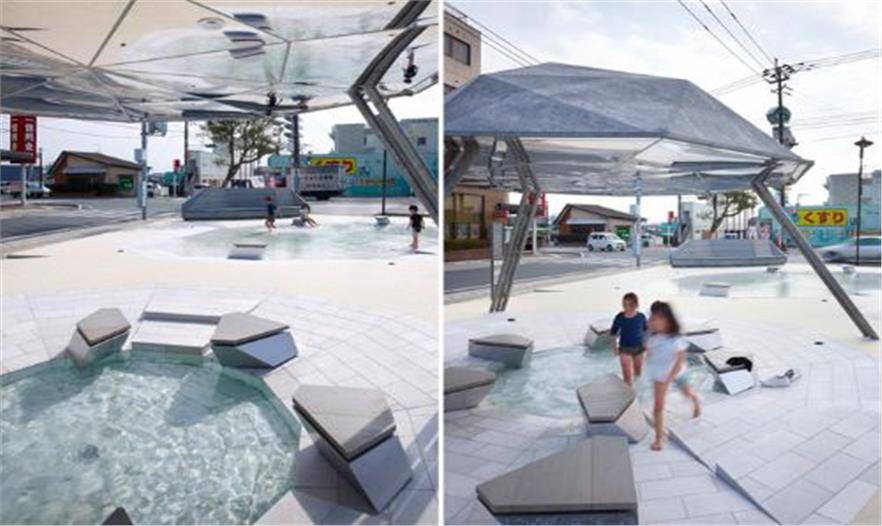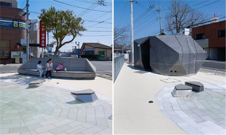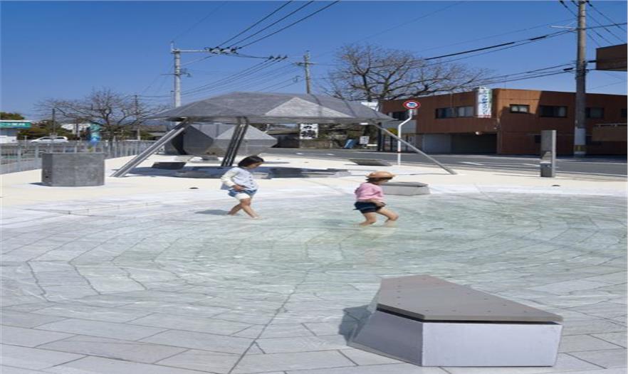 A基地Kiriake是水上公園,有三個(gè)凹陷水池,像是自然形成的水洼,均由白色石頭鋪成.周邊的公廁和座椅均設(shè)計(jì)成石塊狀。
