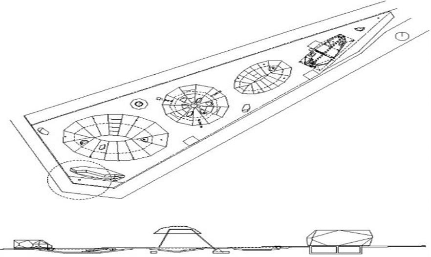 陷水池,B基地有一系列的管道戶外家具,C基地有一顆像大樹般的中心大亭。這三個(gè)公園