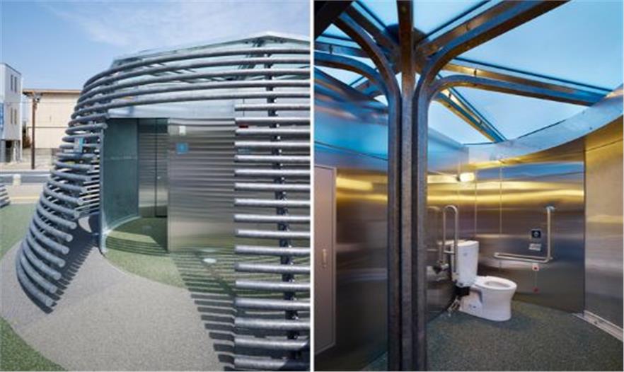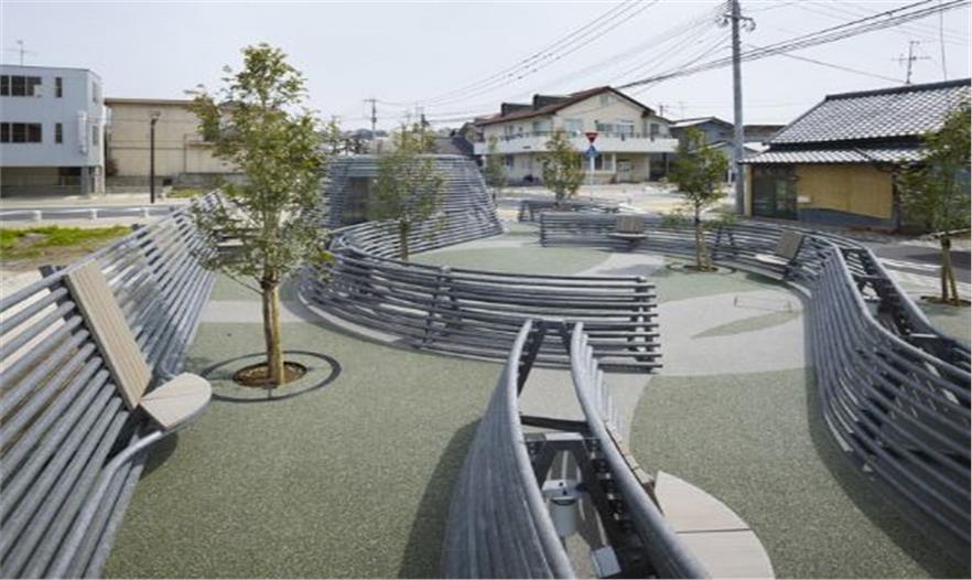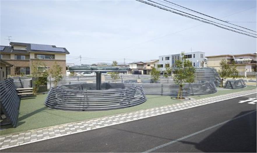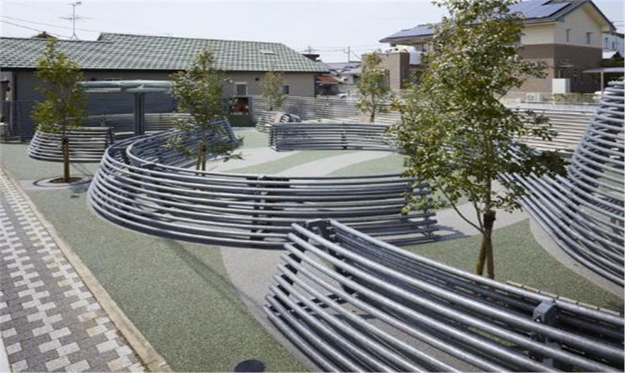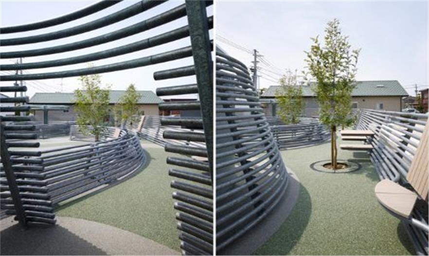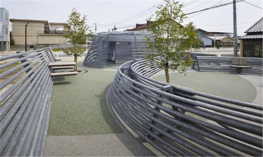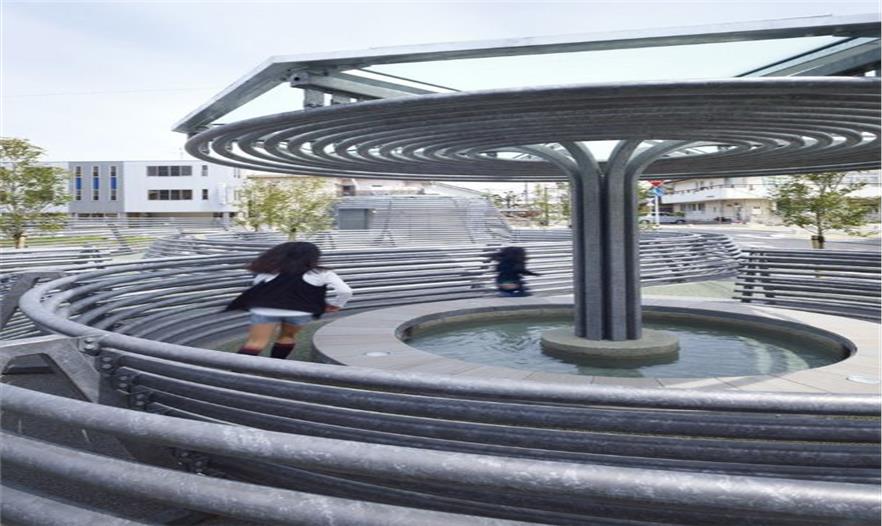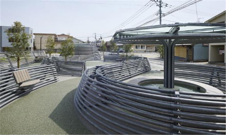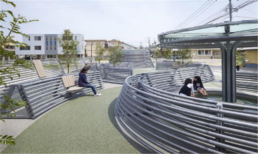 B基地Yokomachi在一個(gè)十字路口,主題是流動(dòng)與交流,這些管子形成坐凳和公廁,還有各個(gè)不同的漩渦般的空間。