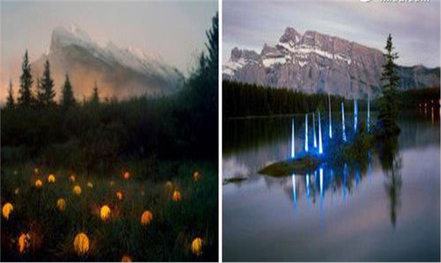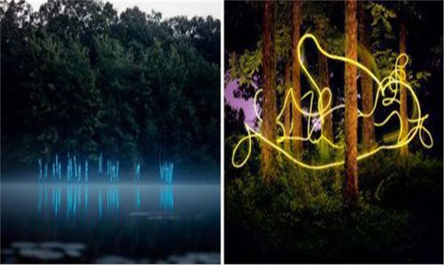 underwood在熟悉的自然景色中找尋可能存在的,飄渺的發(fā)光體,在空間中注入他創(chuàng)作的雕塑燈光。他先確定一塊戶外場地,然后在這一自然環(huán)境中加入發(fā)光體,這些燈光和色彩為原本平凡無奇的環(huán)境添加了抽象的空間質(zhì)感。最終,underwood創(chuàng)作了一系列超現(xiàn)實(shí)的,戲劇化的敘事性作品。