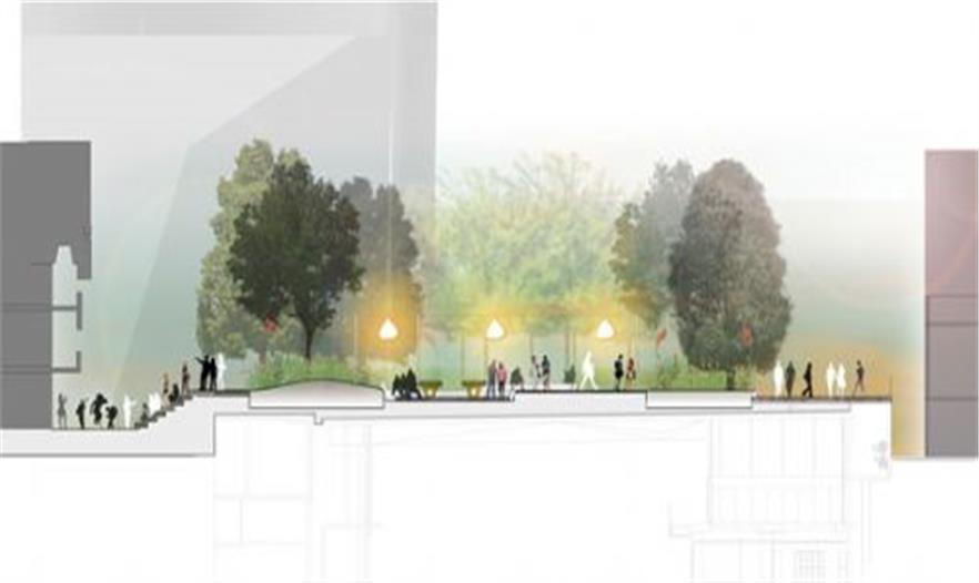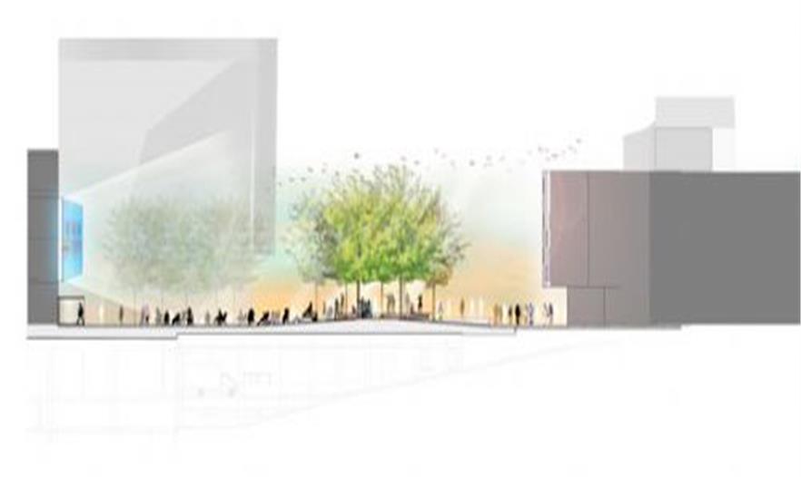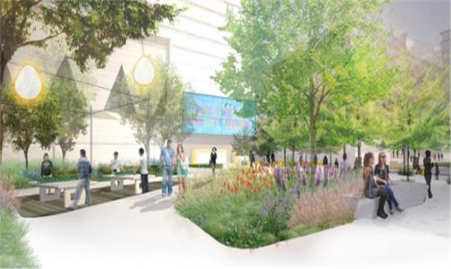根據(jù)事務(wù)所提出的改建方案,他們將在這里建一個以學(xué)生為主要受眾的中心聚集區(qū)。這片受被重建的區(qū)域包括一片草坪,周圍還有雕塑式的座椅。Alumni Green將成為整個工程的中心,設(shè)計突出了校園里繁榮、充滿生機(jī)的氣氛。