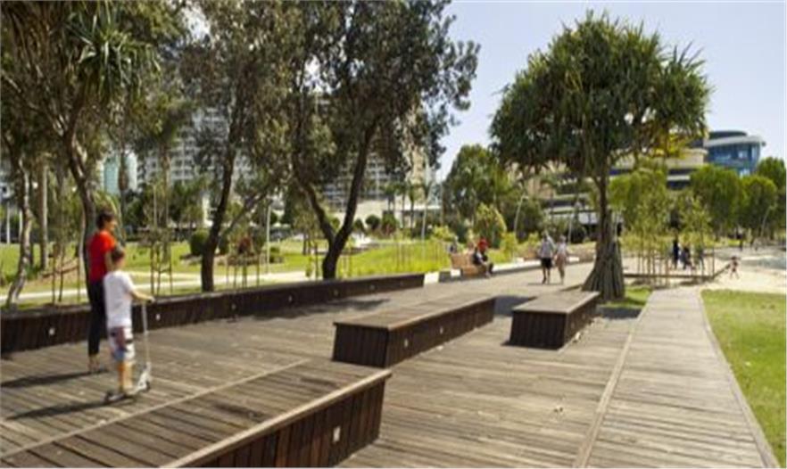 整個(gè)海岸線都加上了放浪等設(shè)施,以防洪水等災(zāi)害的侵襲。設(shè)計(jì)師們通過(guò)一系列設(shè)施的建設(shè)鼓勵(lì)市民進(jìn)行戶外運(yùn)動(dòng)。