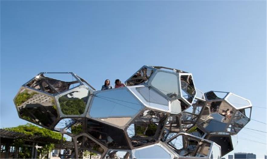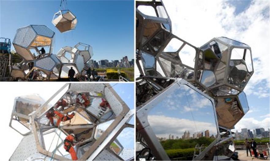 著名藝術(shù)家Tomás Saraceno的大型裝置作品云城市近日在紐約大都會博物館屋頂上亮相,改展覽一直持續(xù)到2012年11月4日。這里有著俯瞰紐約中央公園的最佳視野。裝置是由獨立的鋼結(jié)構(gòu)單元和玻璃組成,這些單元相異,組合在一起讓裝置富有生命力。裝置反射著城市,公園, 天空,云朵,樹影,人們。人們爬上去,觀賞美麗的城市風(fēng)景和裝置所反射的美麗景象。值得前去體驗的展覽。Tomás Saraceno在自然和建筑環(huán)境之間的碰撞中找到靈感,創(chuàng)作出富有生命力的作品。
