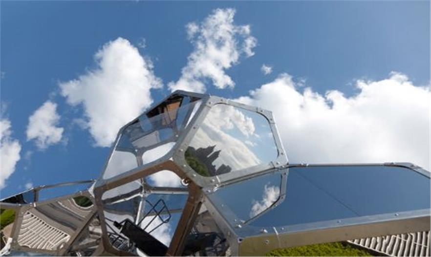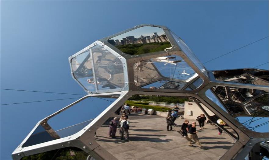 天空,云朵,樹影,人們。人們爬上去,觀賞美麗的城市風(fēng)景和裝置所反射的美麗景象。值得